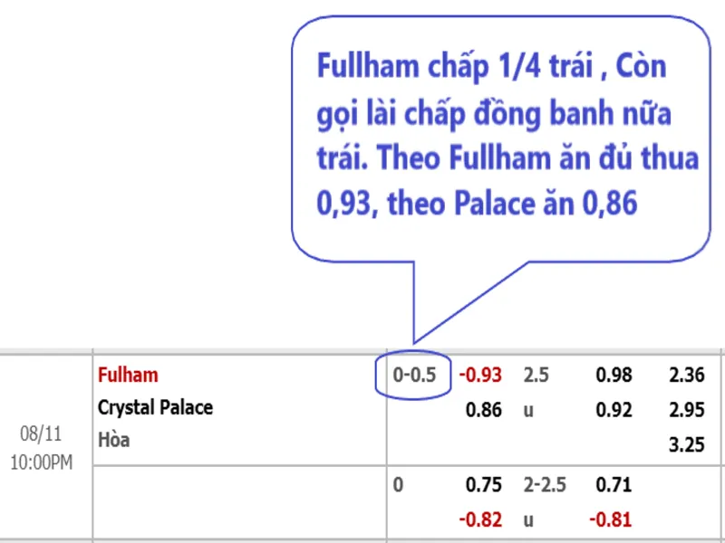 Đánh kèo chấp 2 1/4