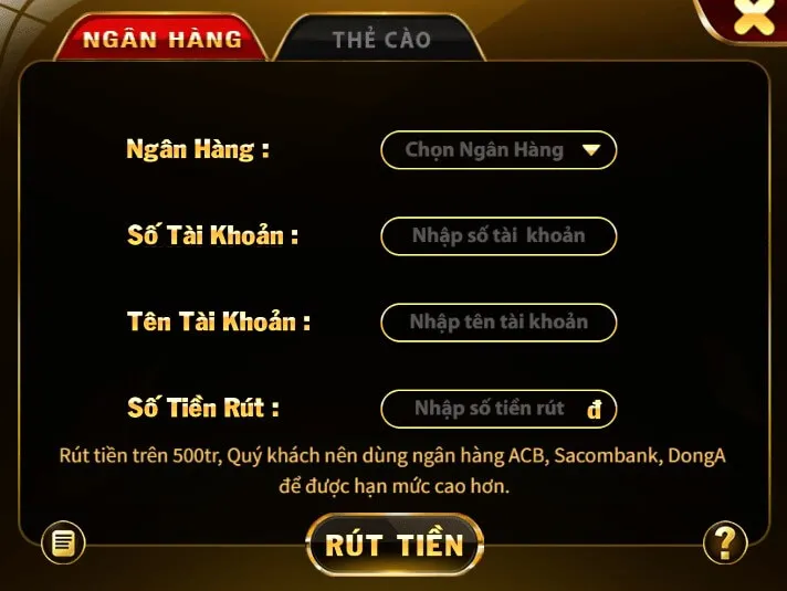 Đăng nhập trang chủ nhà cái uy tín X8Club => Nhấn “Rút tiền” trên giao diện chính => Chọn phương thức rút tiền => Chọn ngân hàng hoặc nhà mạng giao dịch => Điền đầy đủ, chính xác mọi thông tin được yêu cầu => Nhấn “Rút tiền” là hoàn tất.